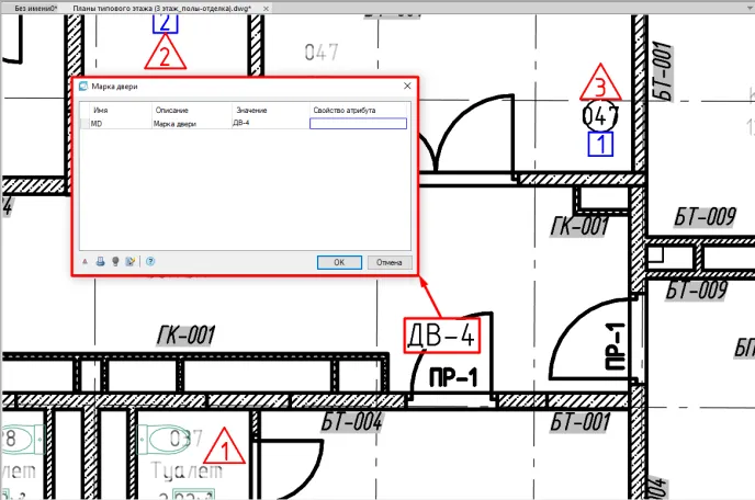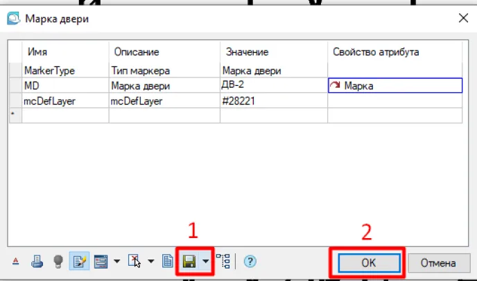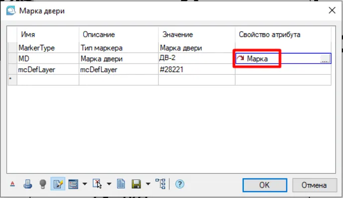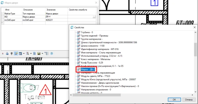 Размещаем марку рядом с дверью и всплывает окно Марки двери (рис. 5).