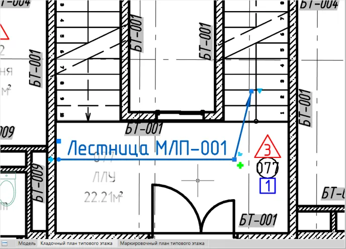 Смотрим на результат после нажатия кнопки ОК и указания на плане лестницы (рис. 17).