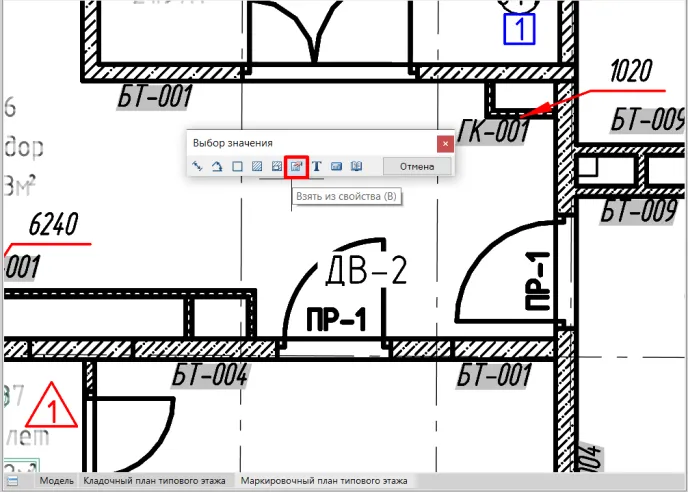 Окно Марка двери повторно можно вызвать двойным щелчком левой кнопки мышки на марке. Также из интересного функционала этого окна отметим функцию Подсветить исходный объект (рис. 10).