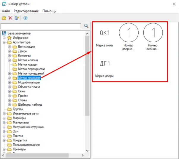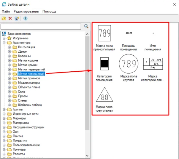 Здесь есть готовые элементы, к примеру, марки помещений (рис. 2).