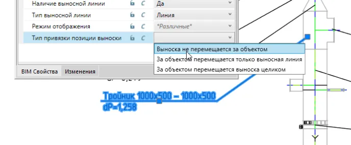 Выноски меняют свое положение вслед за изменением положения объекта, к которому они привязаны. Поведение выноски можно настроить через диалоговое окно «Тип привязки позиции выноски».