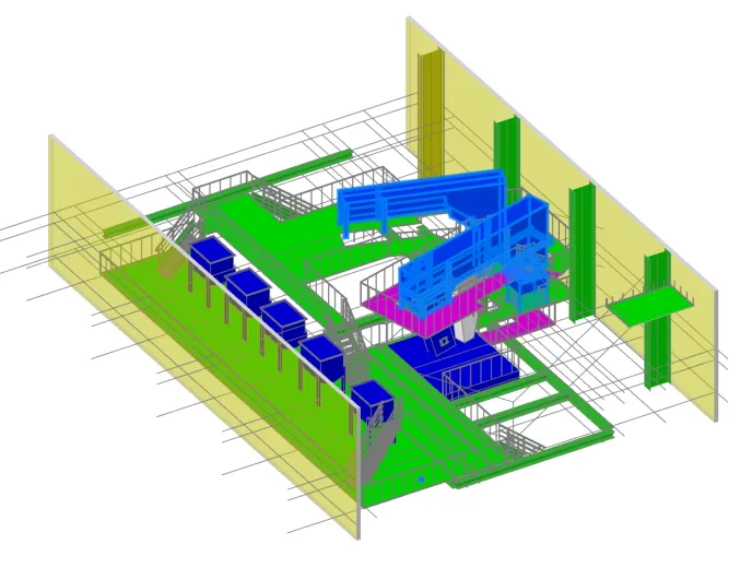 - обеспечивает сквозную координацию – интеграция машиностроительного проектирования в общую BIM-среду устраняет информационные разрывы между различными этапами жизненного цикла объекта (от проектирования оборудования до строительства зданий);