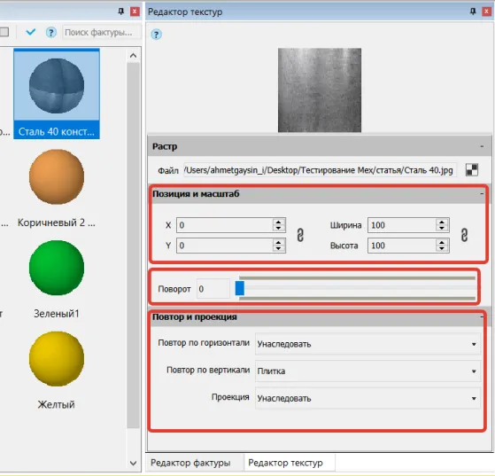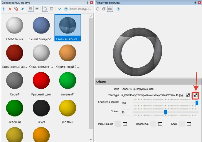 Например, для стали 40 конструкционной необходимо было определить текстуру, найдя подходящее изображение, добавляем его в текстуры, как на рис. 16.