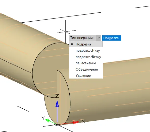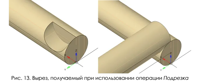Как видим, брусья проходят друг через друга (рис. 11), а не лежат друг на друге. Чтобы получить выемки под будущие брусья, можно воспользоваться функцией Динамические булевы операции (рис. 12). Этот инструмент позволяет ассоциировать объекты между собой для создания сложной геометрии. Примером такой геометрии может служить подрезка стен под кровлю. В данном случае применим операцию Подрезка (рис. 13).