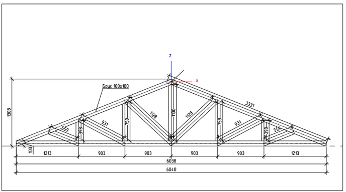 Следующим шагом построим простейшую деревянную ферму. Это можно сделать вручную при помощи колонн и балок или же по заранее подготовленному эскизу из примитивов (рис. 17).