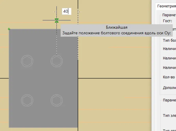 При вызове этой функции открывается окно (рис. 41) для задания болтового соединения. В нем две вкладки: Геометрия и расположение, Прочие свойства.