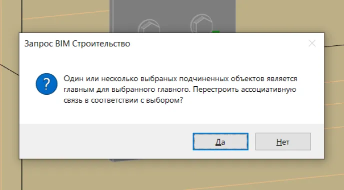При вводе всех вышеуказанных данных программа может выдать запрос (рис. 49) о перестройке ассоциативной связи между объектами, смене главного и подчиненного элементов.