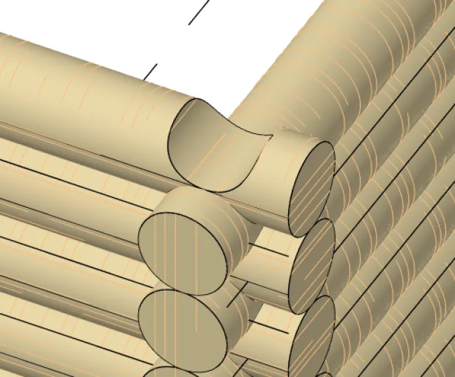 В дальнейшем применяем функцию Подрезка так же, как в первом случае, показанном на рис. 12-13. Результат этих действий – готовые стены из брусьев (рис. 16).