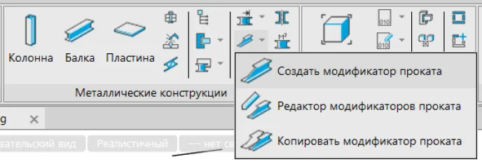 Основные операции с древесиной происходят в разделе Металлические конструкции (конфигурация «Конструкции»), поскольку данный материал имеет схожую специфику работы. Кроме того, могут использоваться другие разделы данной конфигурации, которые отвечают за работу внутри модели, формирование проектных документов, работу с объектами для проектирования бетонных конструкций, создание параметрических объектов.