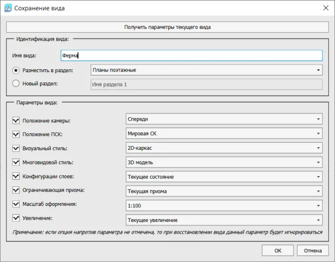 Находим Планы поэтажные и, нажав правую кнопку мыши, добавляем вид (рис. 26). При выборе этой опции появляется окно Сохранение вида (рис. 27), в котором происходит настройка параметров вида. Идентификация вида отвечает за его наименование и раздел, в который вид будет помещен.