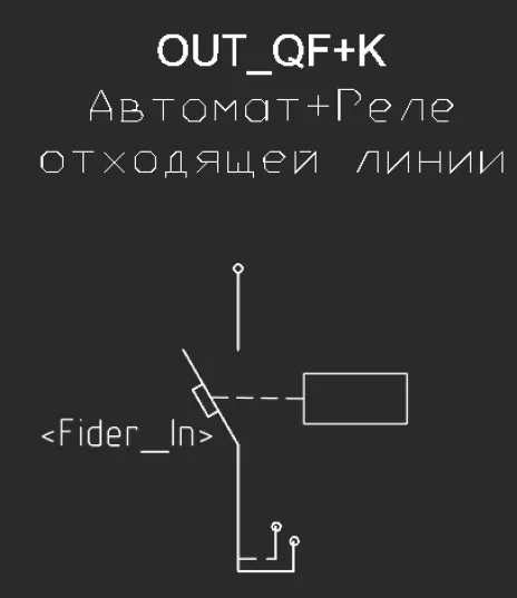 - в шаблоне однолинейной схемы присутствовали блоки IN_QF+K (вводной АВ с НР) (см. рис. 7) и OUT_QF+K (отходящий АВ с НР) (см. рис. 8).