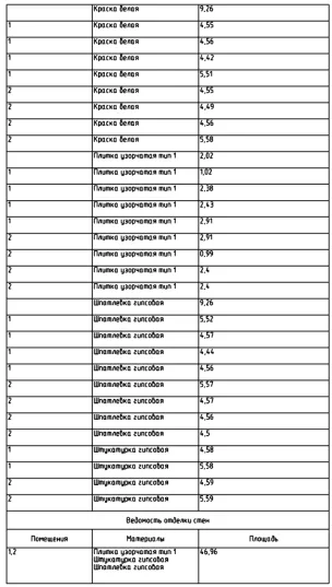 - сформирована таблица ведомости отделки и выполнена ее настройка;