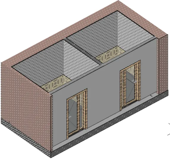 После всех построений, связанных со слоями стены, добавим к модели два дверных проема и посмотрим, как они могут взаимодействовать с полученной нами многослойной конструкцией.