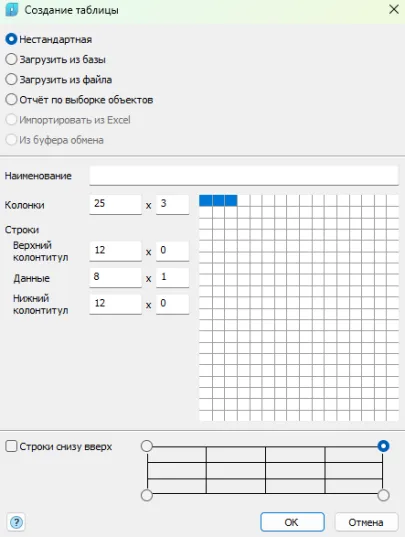 Создаем нестандартную таблицу с одной строкой и тремя столбцами (рис. 25).