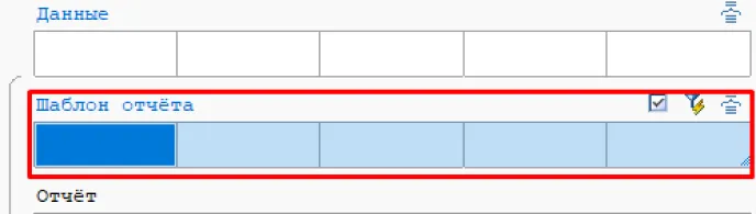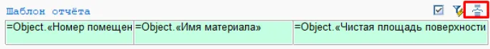 Основа отчета сформирована. Задаем через инструменты быстрого выбора параметры элементов, которые попадут в итоговую таблицу. Отбор параметров для выборки настраивается через шапку шаблона отчета (рис. 30).