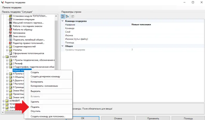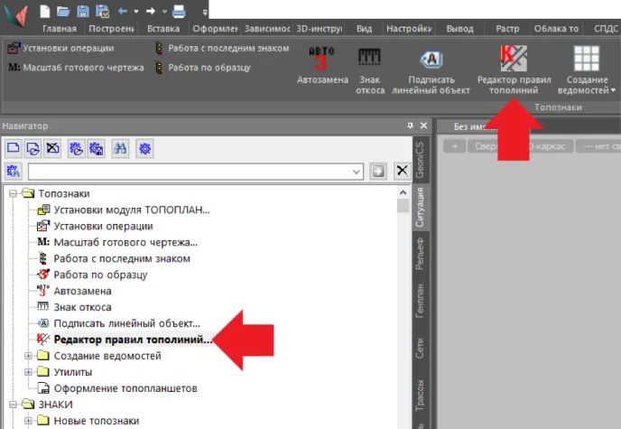 Теперь, найдя УТЗ и просмотрев их обширную библиотеку, если мы обнаружим, что необходимого нам знака нет – мы можем его добавить. Для этого перейдем в Редактор геодерева, нажав правой кнопкой мыши (ПКМ) на закладку навигатора Ситуация и в открывшимся окне выбрав Редактор... (рис. 2).