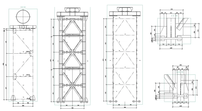 Использование рассмотренных нами элементов позволяет значительно сократить сроки разработки проекта. Но так как их производство занимает достаточно долгое время, в первую очередь следует определить наиболее часто используемые конструкции. В нашем случае были выбраны высокие опоры (рис. 13–14), так как в одном проекте их количество может исчисляться десятками.